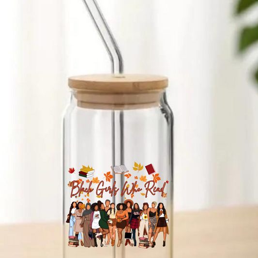 FALL Black Girls Who Read 16oz Glass Can
